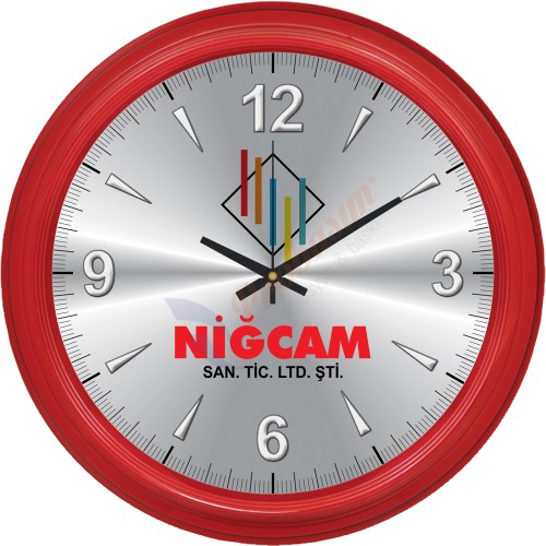 * Ebat: 46 cm * Çerçeve: Plastik * Kadran: Metal * Saniye: Akar * Cam: Mineral * Baskı: Serigrafi, UV * Koli Adeti: 10