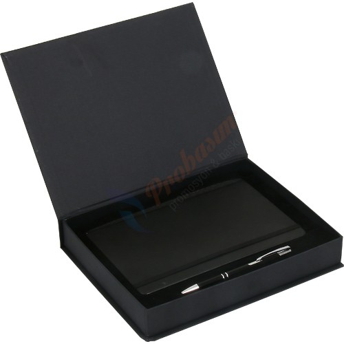 * Termo Deri Defter 13 x 21 cm (Gebze) * Metal Kalem Tükenmez (0555-30) * Kutu: Deri