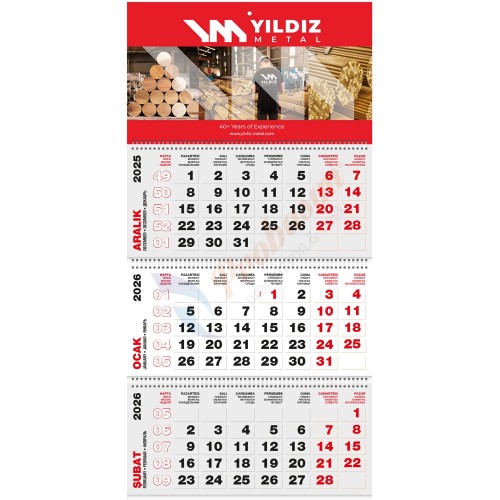 * Takvim Ebadı: 39,6 x 83 cm